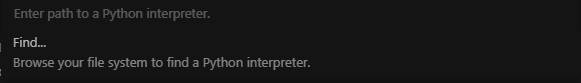 다음으로 Enter interpreter path... 를 누른 뒤 Find... 로 들어가서 활성화하고 싶은 가상환경을 선택한다.